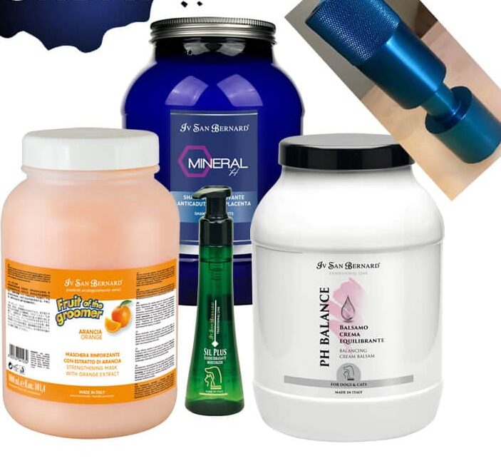 The key to a great de-shed is getting as much coat out in the bath as possible. The dead undercoat on an animal is held in by the excess dirt and sebum that has built up on the skin and coat. In order to remove that excess dirt and sebum and release the impacted coat, we are going to use a combination of products and techniques. Using this combination of techniques and products has shown to drop 80-90% of dead undercoat in the tub. Package includes: 3000ml Mineral H Shampoo, 3000ml pH Balance Conditioner Mask, 3000ml Fruit of the Groomer Orange PEK Conditioner Mask, 100ml Sil Plus White, and a Sav-Ur-Fur Undercoat Nozzle (color varies).